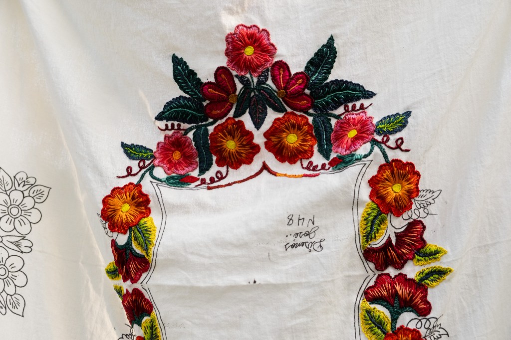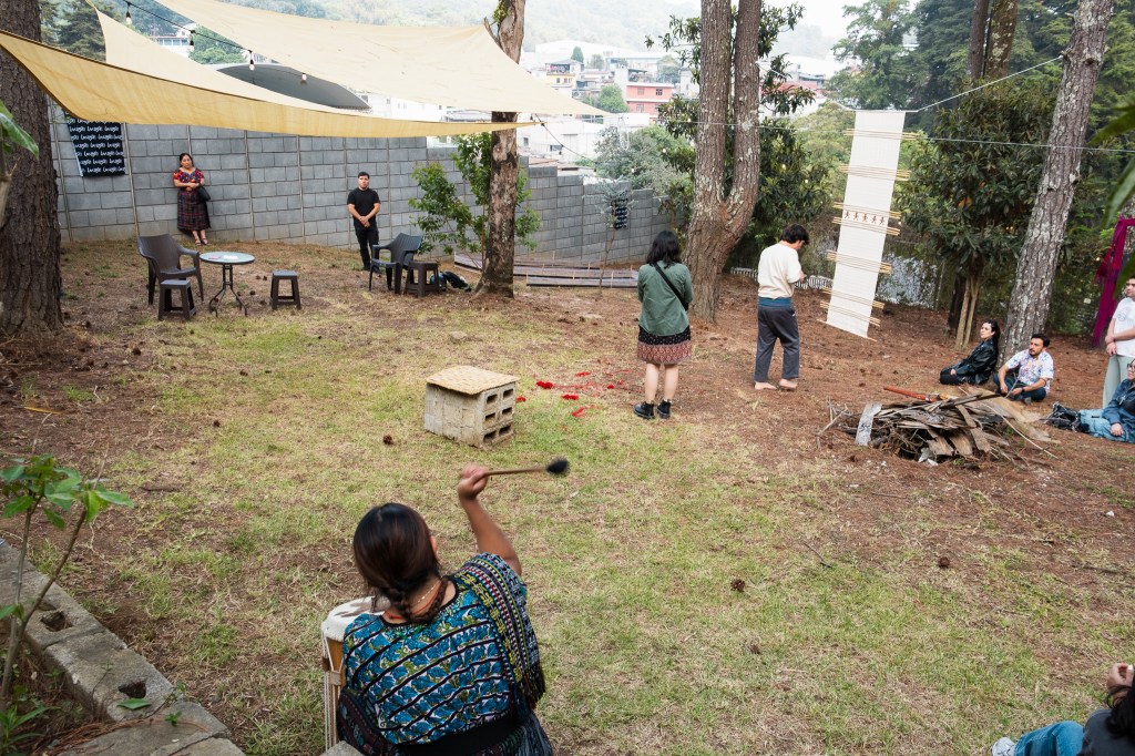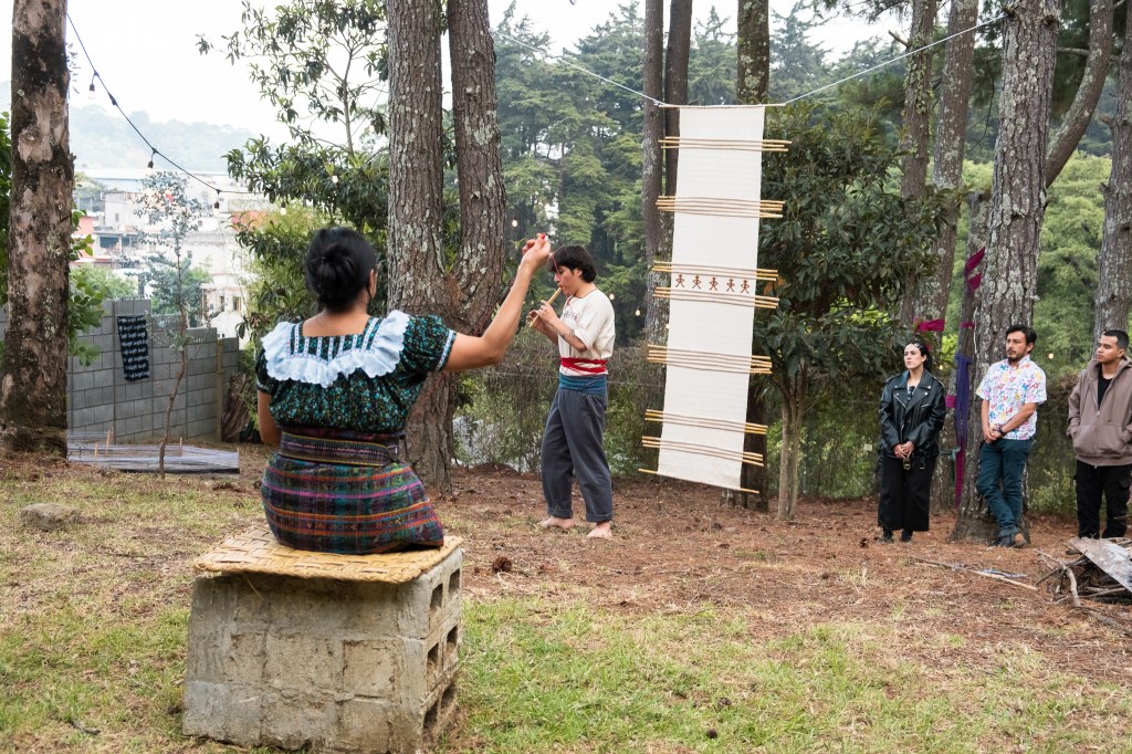 “Esta exposición nos invita a reconocer el hilar como una fuerza viva que conecta y da sentido a la existencia comunitaria. Desde Patzicía, Jeff Can Xicay utiliza el hilo para nombrar territorios en mapas y afirmar identidades en los huipiles.